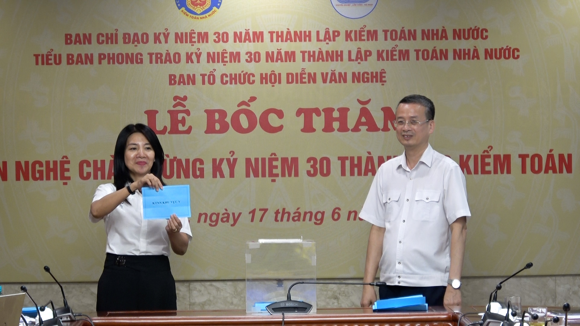 (sav.gov.vn) - Chiều ngày 17/6 tại Hà Nội, Kiểm toán Nhà nước (KTNN) đã tổ chức Lễ bốc thăm xếp lịch chạy sân khấu và lịch biểu diễn cho các đơn vị tham gia Hội diễn văn nghệ kỷ niệm 30 năm thành lập. Sự kiện diễn ra theo hình thức trực tiếp kết hợp trực tuyến với các đơn vị Kiểm toán Nhà nước khu vực.