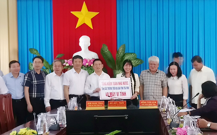 Nhân dịp này, Tổng Kiểm toán nhà nước Hồ Đức Phớc thay mặt cho KTNN đã trao 100 triệu đồng cho Quỹ Khuyến học của tỉnh Trà Vinh và tặng 40 máy tính xách tay cho cơ sở giáo dục thường xuyên của tỉnh./.