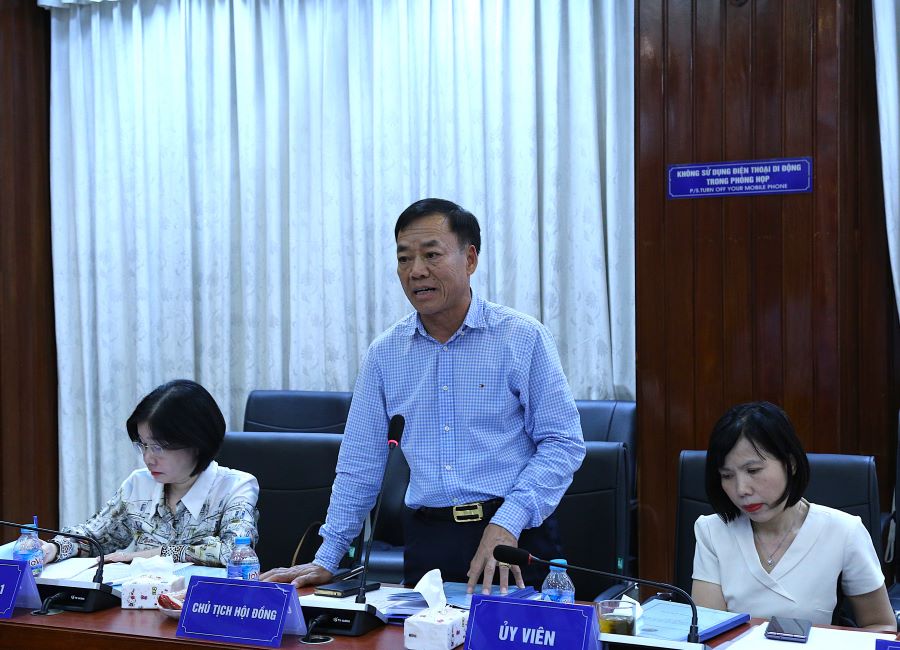 ThS. Trần Kim Lộc - Giám đốc Trường Đào tạo và Bồi dưỡng nghiệp vụ kiểm toán, Chủ tịch Hội đồng nghiệm thu gợi mở nhiều nội dung để hoàn thiện đề tài. Ảnh: Nguyễn Ly
