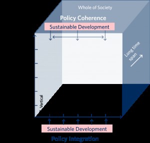 Tính nhất quán của chính sách là một khái niệm rộng. Nó có thể được hiểu là một nguyên tắc mà chính phủ tìm cách giảm thiểu xung đột và tăng cường hiệu quả các hành động của mình nhằm đạt được các mục tiêu đã đề ra. Tính nhất quán của chính sách gắn với khía cạnh phát triển bền vững và liên quan đến toàn xã hội có thể được minh họa bằng hình sau: