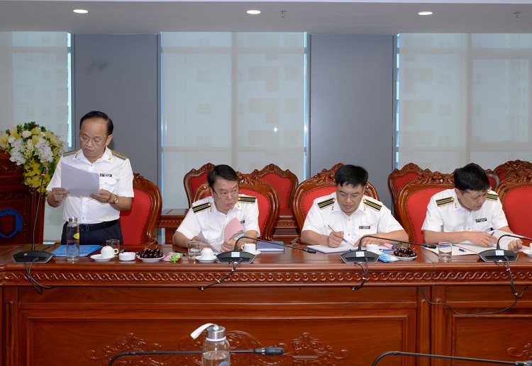 Kiểm toán trưởng KTNN khu vực I Nguyễn Anh Tuấn trình bày Báo cáo kết quả thực hiện nhiệm vụ công tác 7 tháng đầu năm và kế hoạch công tác 5 tháng cuối năm 2022