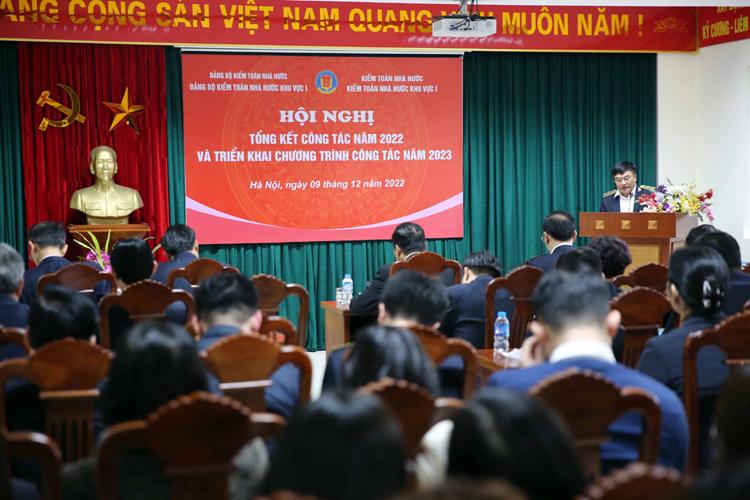 Trình bày dự thảo báo cáo tổng kết công tác năm 2022 và Kế hoạch công tác năm 2023, Phó Bí thư Đảng ủy, Phó Kiểm toán trưởng KTNN khu vực I Bùi Thanh Lâm cho biết, trong năm, Đảng ủy và Lãnh đạo KTNN khu vực I đã quyết tâm chỉ đạo đơn vị phấn đấu hoàn thành xuất sắc nhiệm vụ được giao. Năm 2022, KTNN khu vực I được Tổng Kiểm toán nhà nước giao nhiệm vụ kiểm toán 15 cuộc kiểm toán, hiện đơn vị đã trình phát hành Báo cáo kiểm toán (BCKT) của 08/12 cuộc (không bao gồm 03 cuộc bổ sung năm 2021), đang hoàn thiện, trình phát hành BCKT của 04/12 cuộc kiểm toán.