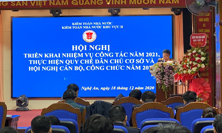 (sav.gov.vn) - Ngày 18/12/2020 tại trụ sở Kiểm toán nhà nước (KTNN) khu vực II - thành phố Vinh, tỉnh Nghệ An, KTNN khu vực II đã tổ chức Hội nghị tổng kết công tác năm 2020 và triển khai chương trình công tác năm 2021. Phó Tổng Kiểm toán nhà nước Nguyễn Tuấn Anh dự và phát biểu chỉ đạo Hội nghị.