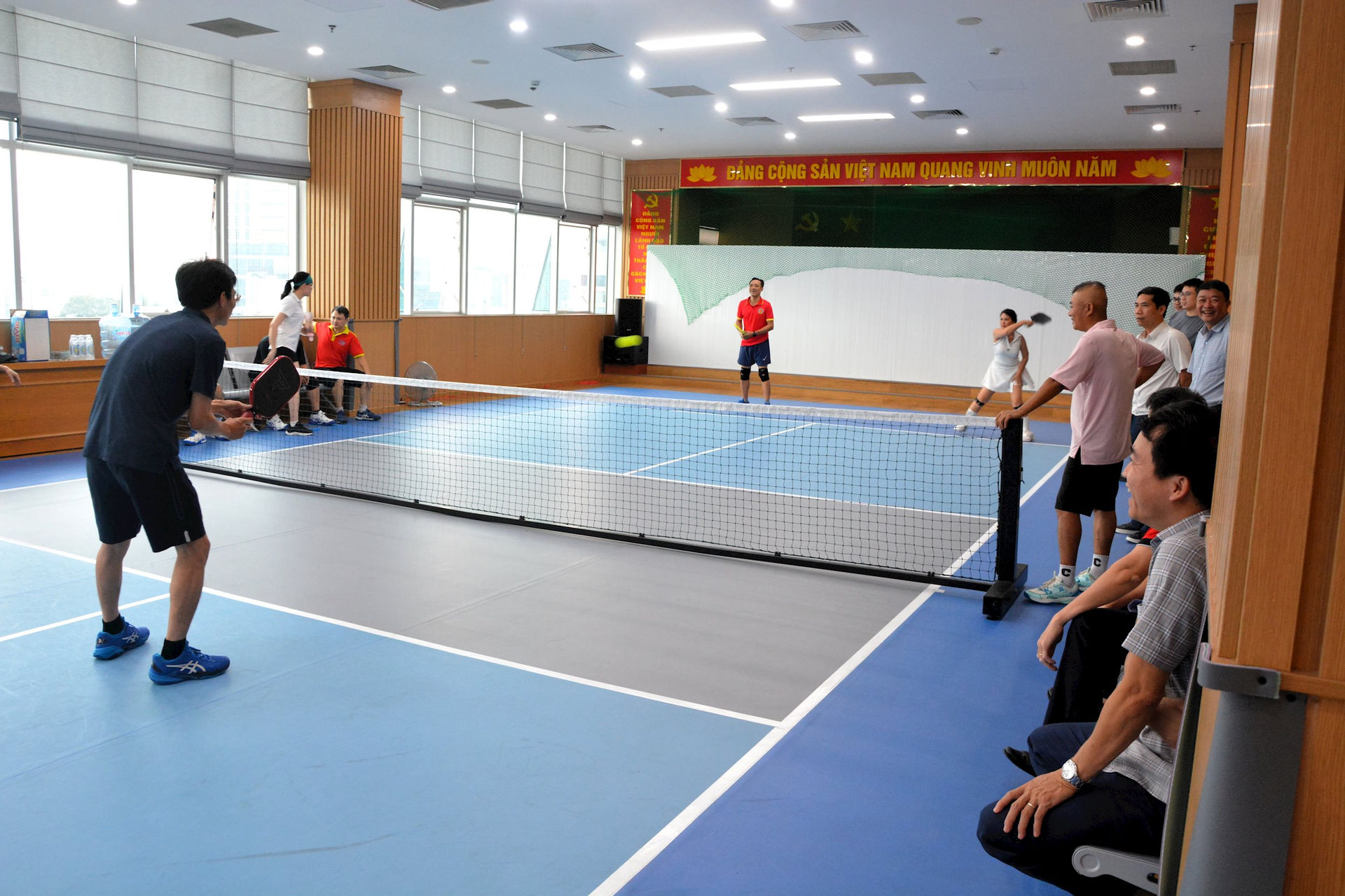 Theo Ban Tổ chức, Giải Pickleball gồm tổng cộng 10 đội được chia thành 3 bảng. Các đội được bốc thăm chia bảng, thi đấu vòng tròn để chọn ra những cặp đôi có thành tích cao bước vào vòng bán kết và chung kết. Các trận đấu diễn ra trong bầu không khí vui tươi, hào hứng, thể hiện tinh thần giao lưu, đoàn kết và cống hiến. Mỗi pha bóng đẹp đều nhận được tiếng reo hò, cổ vũ nhiệt tình từ các cổ động viên.