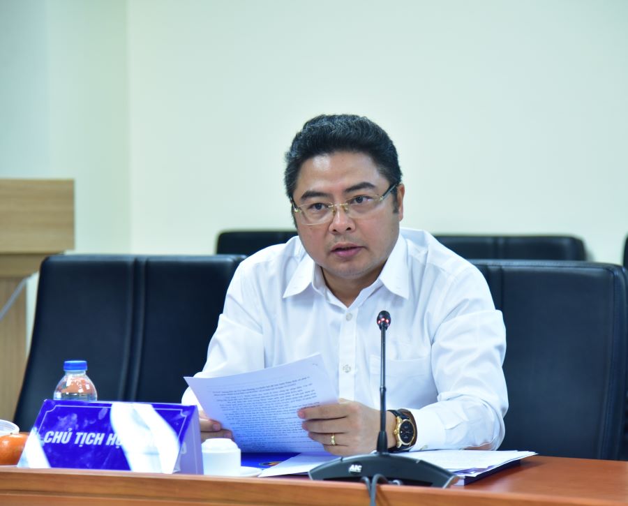 TS. Vũ Thanh Hải - Kiểm toán trưởng KTNN chuyên ngành IV làm Chủ tịch Hội đồng nghiệm thu, cùng tham dự cuộc họp có các thành viên trong Hội đồng nghiệm thu và Ban đề tài.