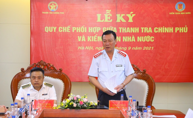 Phát biểu tại Lễ ký kết, Tổng Thanh tra Chính phủ Đoàn Hồng Phong đánh giá, trong thời gian qua, hai cơ quan đã có mối quan hệ phối hợp hiệu quả trong hoạt động thanh tra, kiểm toán trên cơ sở thực hiện Quy chế phối hợp được ký kết vào năm 2015. Kết quả công tác thanh tra, kiểm toán đã góp phần nâng cao hiệu quả quản lý, sử dụng ngân sách Nhà nước và các nguồn lực công; kịp thời phòng ngừa, phát hiện và xử lý vi phạm pháp luật, góp phần nâng cao hiệu lực quản lý Nhà nước và phục vụ đắc lực cho công cuộc phát triển đất nước. Tổng Thanh tra Chính phủ cho rằng việc điều chỉnh, sửa đổi Quy chế phối hợp và ký kết lần này là dấu mốc quan trọng nhằm tiếp tục phát huy những kết quả đã đạt được và tiếp tục làm sâu sắc hơn nữa mối quan hệ phối hợp giữa hai Cơ quan. Điều này thể hiện tinh thần tích cực, chủ động của Lãnh đạo Thanh tra Chính phủ và Lãnh đạo Kiểm toán nhà nước trong việc nâng cao hiệu quả thực hiện nhiệm vụ chính trị của cả hai cơ quan.