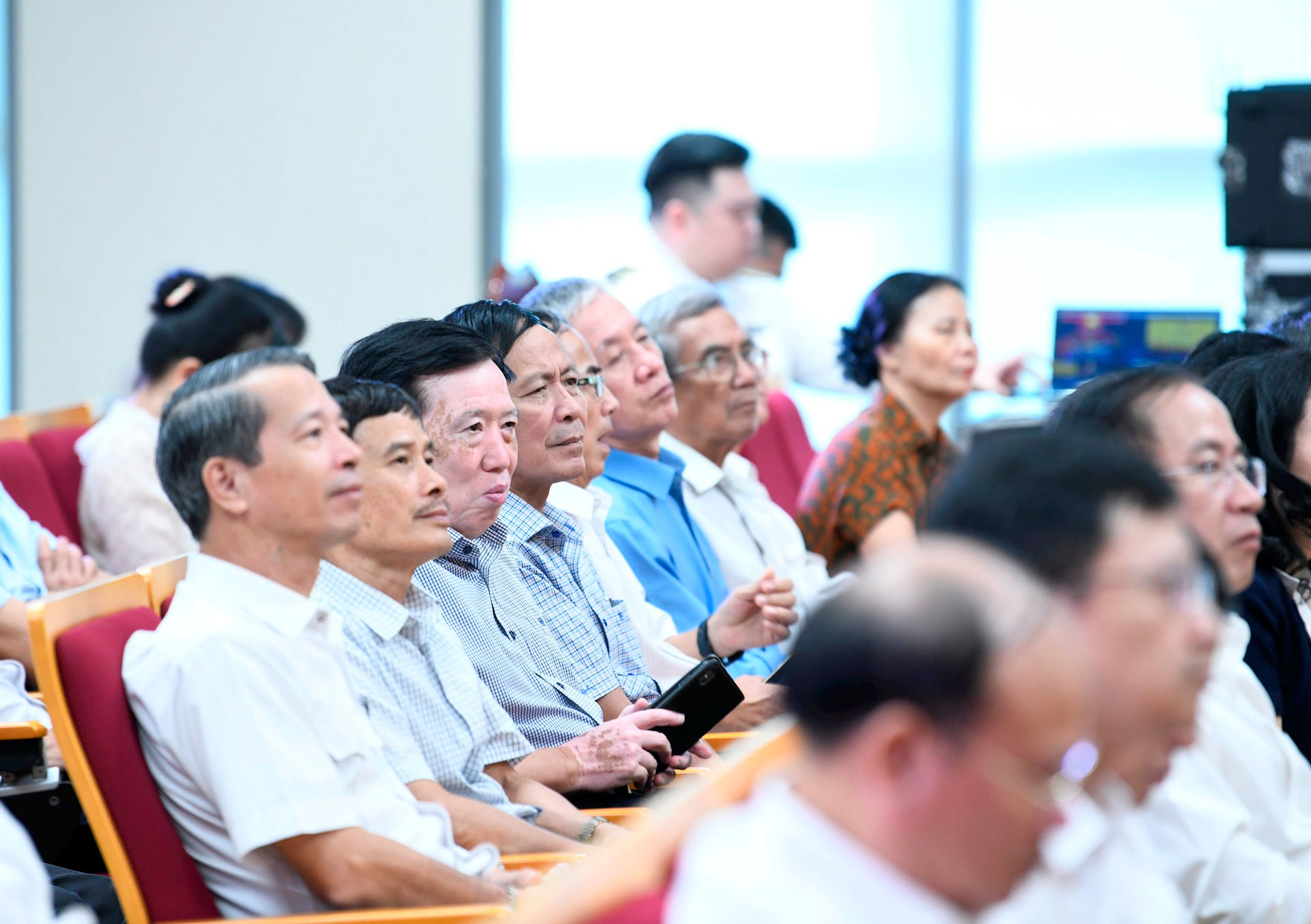Dù tuổi đã cao, nhưng nguyên Tổng Kiểm toán nhà nước Đỗ Bình Dương và nguyên Phó Tổng Kiểm toán nhà nước Cao Tấn Khổng đã tới dự Lễ Kỷ niệm từ rất sớm