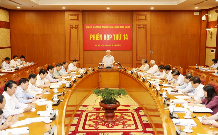 (sav.gov.vn) - Sáng 16/8/2018, tại Trụ sở Trung ương Đảng, Ban Chỉ đạo Trung ương về phòng, chống tham nhũng tổ chức Phiên họp thứ 14 để kiểm điểm, đánh giá sau 5 năm hoạt động và đề ra nhiệm vụ trọng tâm công tác thời gian tới; đánh giá kết quả công tác 7 tháng đầu năm và đề ra nhiệm vụ những tháng cuối năm 2018. Tổng Bí thư Nguyễn Phú Trọng, Trưởng Ban Chỉ đạo Trung ương về phòng, chống tham nhũng chủ trì Phiên họp. Ủy viên BCH Trung ương Đảng, thành viên Ban Chỉ đạo Trung ương về phòng chống tham nhũng, Tổng Kiểm toán nhà nước Hồ Đức Phớc dự Hội nghị.