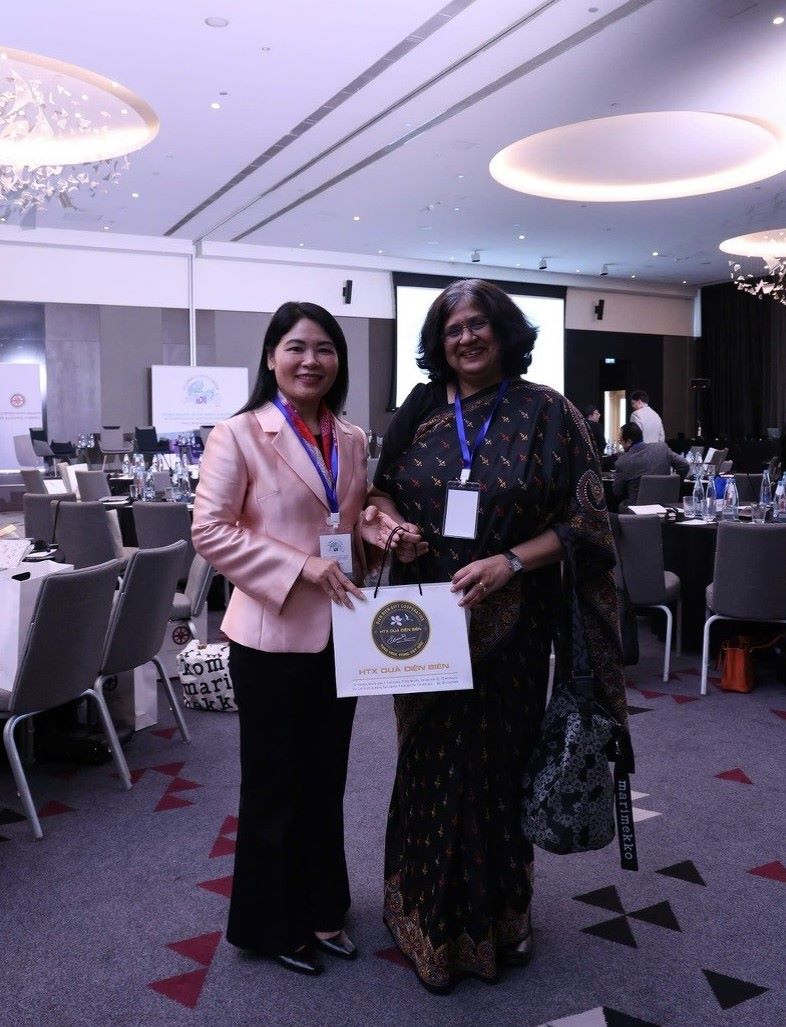 Phó Tổng Kiểm toán nhà nước Hà Thị Mỹ Dung tặng quà Phó Giám đốc IDI Archarna Shirat. Ảnh: CTV