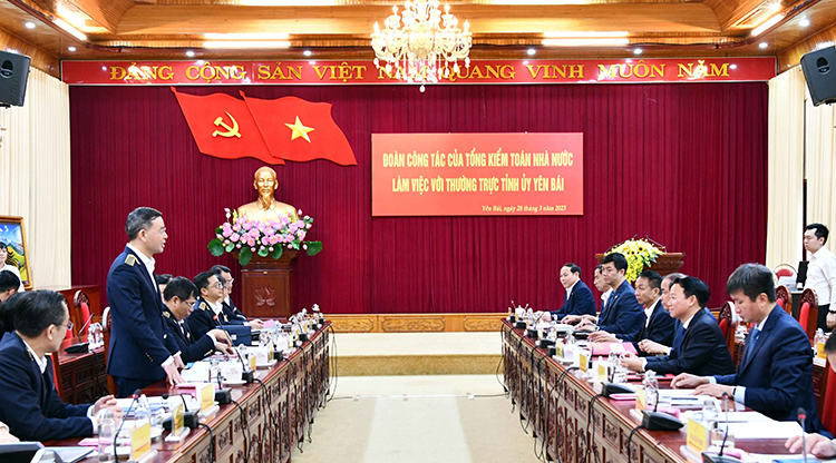 Nhấn mạnh Yên Bái là tỉnh nghèo, còn nhiều khó khăn, trong khi nguồn lực địa phương cho hạ tầng hạn hẹp, văn bản pháp luật còn chồng chéo…dẫn đến quá trình triển khai về kinh tế, xã hội còn nhiều khó khăn, Bí thư Tỉnh ủy Yên Bái mong muốn tiếp tục nhận được sự phối hợp, hỗ trợ mạnh mẽ của KTNN để địa phương hoàn thành được nhiệm vụ được giao. Bí thư Tỉnh ủy Yên Bái đề nghị tăng cường hơn nữa sự phối hợp từ khâu xây dựng kế hoạch kiểm toán để tránh sự chồng chéo với hoạt động của các cơ quan thanh tra, kiểm tra; tăng cường kiểm toán các dự án công nhóm A, nhóm B; tăng cường kiểm toán chuyên đề nhất là chuyên đề liên quan đến Chương trình mục tiêu quốc gia, an sinh xã hội; tăng cường chia sẻ thông tin; nghiên cứu đề xuất có cơ chế xử lý đối với các kết luận, kiến nghị của KTNN khó có khả năng thực hiện để giúp các địa phương thực hiện tốt các kiến nghị của KTNN; tăng cường bồi dưỡng chuyên môn, nghiệp vụ chuyên đề về tài chính, ngân sách cho đại biểu HĐND tỉnh và Lãnh đạo các cấp chính quyền địa phương, đảm bảo quá trình vận hành tài chính - ngân sách đạt hiệu quả cao…