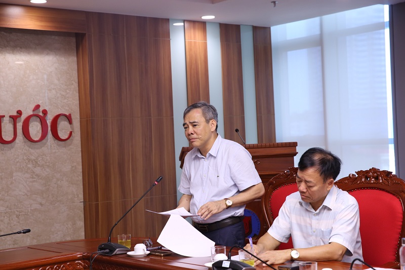 Chánh Văn phòng Ban cán sự Đảng- Đảng uỷ- Đoàn thể Nguyễn Mạnh Cường, Phó Trưởng Ban biên tập thường trực báo cáo tại cuộc họp.