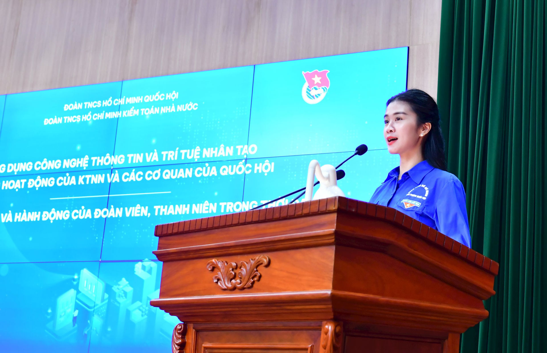 Phát biểu khai mạc, Bí thư Đoàn Thanh niên Quốc hội Nguyễn Thị Kim Anh cho biết, trong bối cảnh cuộc Cách mạng công nghiệp lần thứ tư và xu thế chuyển đổi số quốc gia đang diễn ra mạnh mẽ, CNTT và AI đã và đang trở thành động lực quan trọng thúc đẩy sự đổi mới, nâng cao hiệu lực, hiệu quả hoạt động của các cơ quan nhà nước. Đặc biệt, với Quốc hội - cơ quan quyền lực nhà nước cao nhất của nhân dân - và một thiết chế bảo đảm kỷ cương, minh bạch như KTNN, việc ứng dụng CNTT và AI không chỉ là nhu cầu tất yếu mà còn là yêu cầu cấp bách, gắn trực tiếp với việc nâng cao chất lượng, hiệu quả tham mưu hoạt động lập pháp, giám sát, quyết định vấn đề quan trọng của đất nước và kiểm toán.