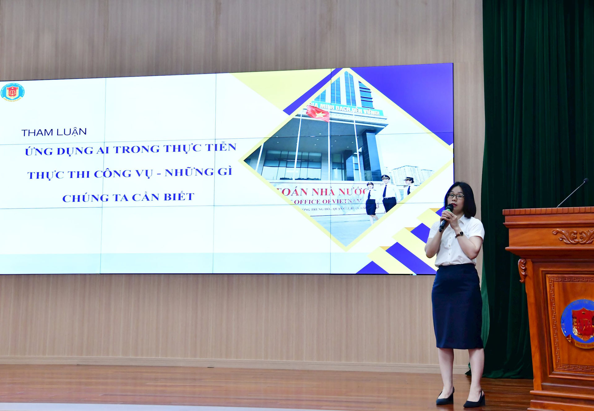 Tại Tọa đàm, Phó Tổng Kiểm toán nhà nước đã đưa ra nhiều dẫn chứng về các quốc gia, doanh nghiệp quốc tế bị tụt hậu do chậm thích nghi, chậm đổi mới, đồng thời cho biết, thời gian qua, Đảng ủy, lãnh đạo KTNN luôn chú trọng đẩy mạnh ứng dụng CNTT và AI trong hoạt động kiểm toán. Đặc biệt, bên cạnh việc phối hợp, tận dụng cơ sở hạ tầng của các doanh nghiệp công nghệ, KTNN đã trang bị máy chủ liên quan đến AI để chủ động xử lý những dữ liệu của đơn vị được kiểm toán, đồng thời, không ngừng tăng cường bảo mật dữ liệu...