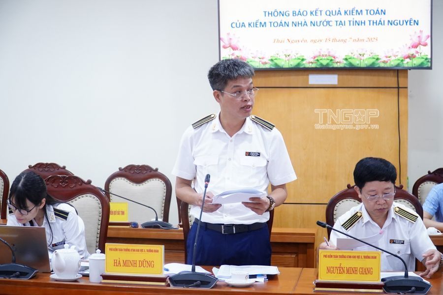 Phát biểu tại Hội nghị, đồng chí Trần Minh Khương, Phó Tổng Kiểm toán nhà nước đánh giá cao sự quan tâm chỉ đạo của tỉnh Thái Nguyên trong triển khai các nội dung về thực hiện ngân sách địa phương, triển khai các chính sách ưu đãi đầu tư tại khu công nghiệp và việc ứng dụng công nghệ thông tin, chuyển đổi số. Đồng chí đề nghị UBND tỉnh Thái Nguyên sớm bổ sung 2 báo cáo góp ý đối với Báo cáo kiểm toán, đồng thời tập trung thực hiện các nội dung đã được Đoàn kiểm toán chỉ ra. Đồng chí cũng đề nghị Đoàn kiểm toán rà soát các nội dung đề nghị của UBND tỉnh Thái Nguyên để hoàn thiện báo cáo theo quy định./.