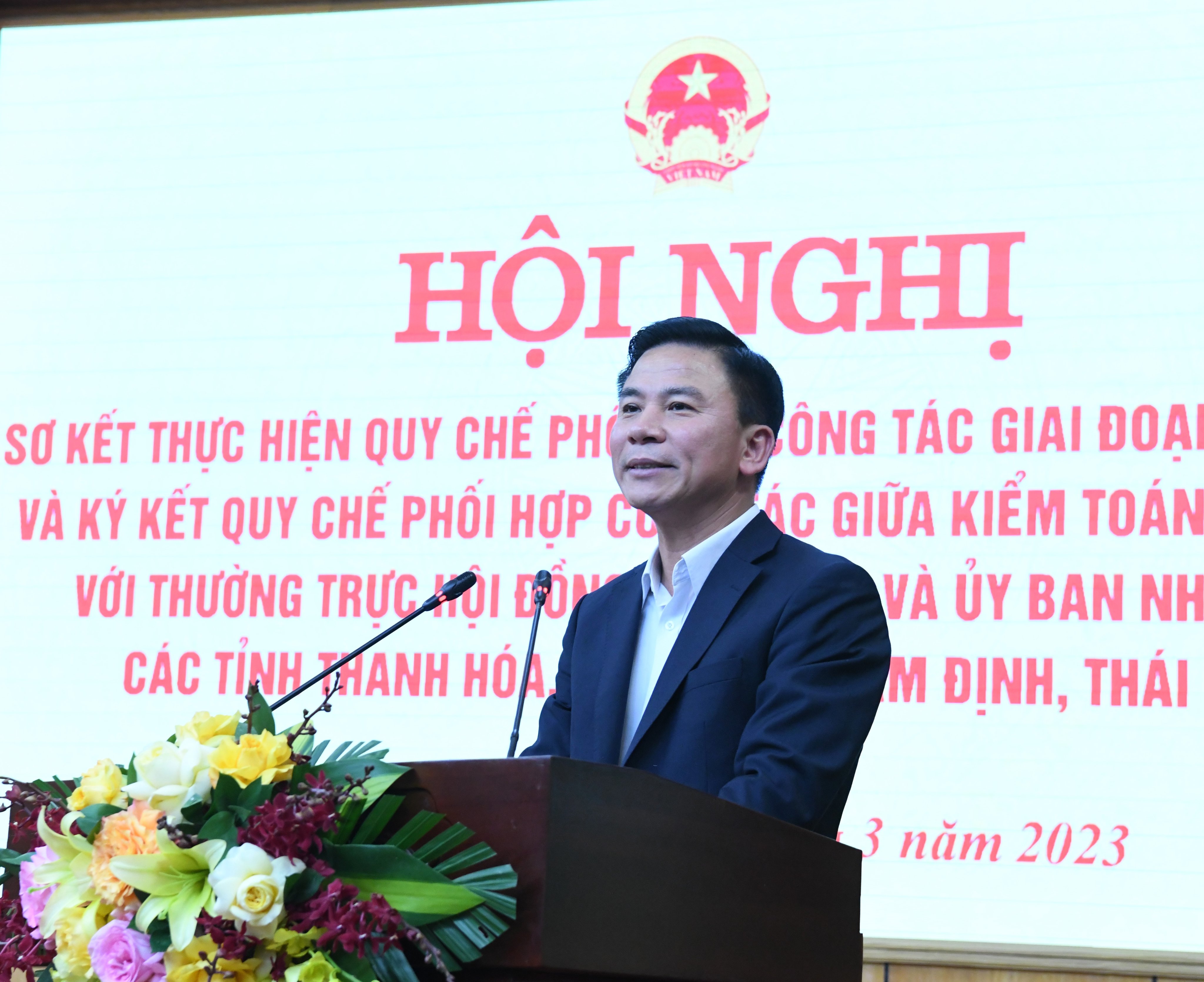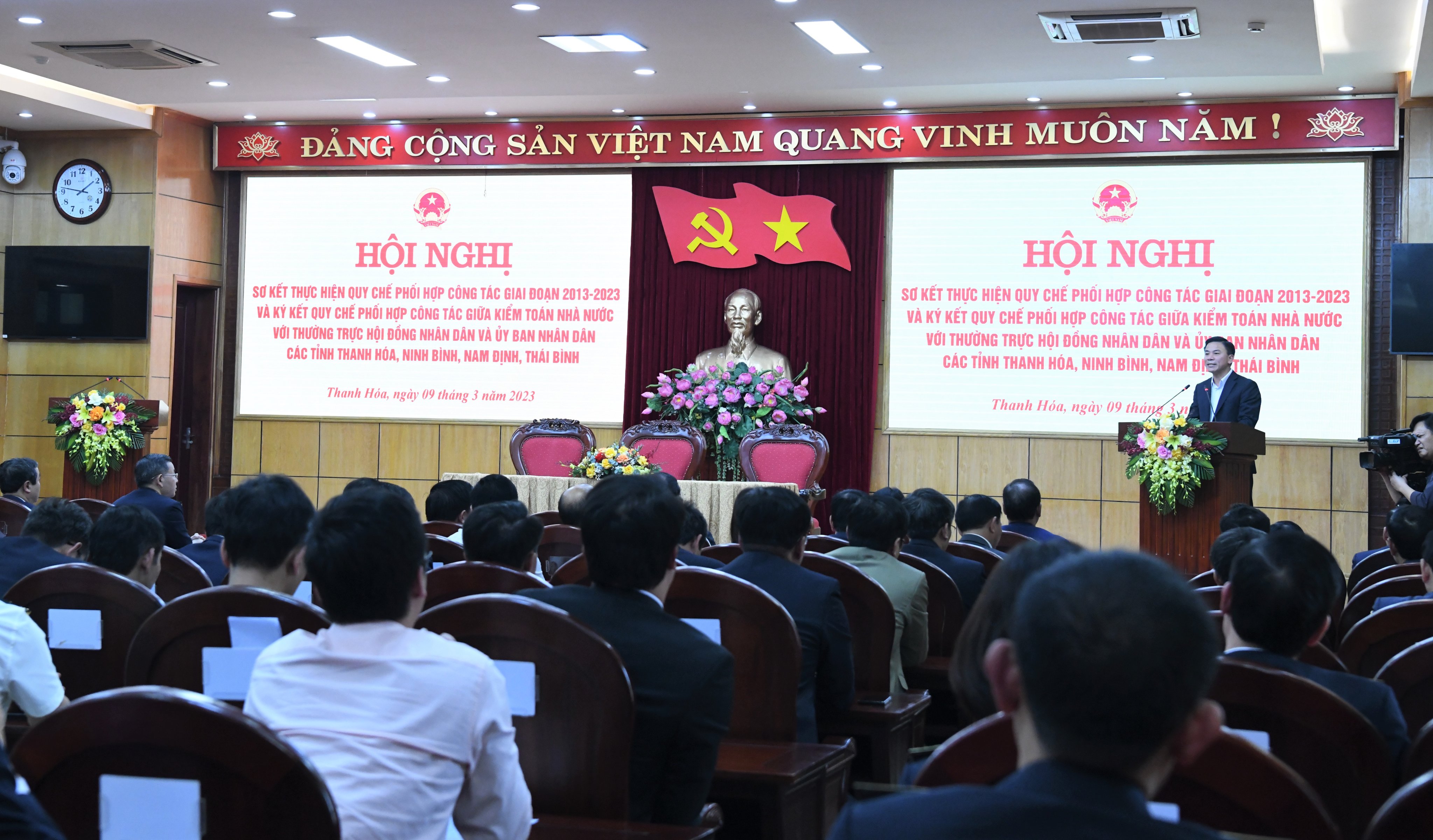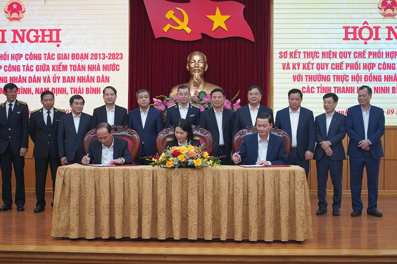 Tại hội nghị, dưới sự chứng kiến của lãnh đạo Kiểm toán Nhà nước và lãnh đạo các tỉnh Thanh Hóa, Ninh Bình, Nam Định, Thái Bình, Kiểm toán Nhà nước và Thường trực HĐND, UBND các tỉnh Thanh Hóa, Ninh Bình, Nam Định, Thái Bình đã ký kết quy chế phối hợp công tác