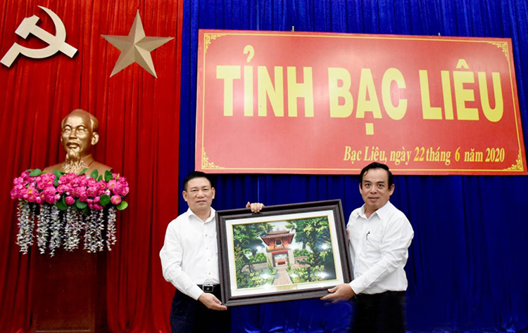 Tổng Kiểm toán nhà nước tặng quà lưu niệm cho UBND tỉnh Bạc Liêu