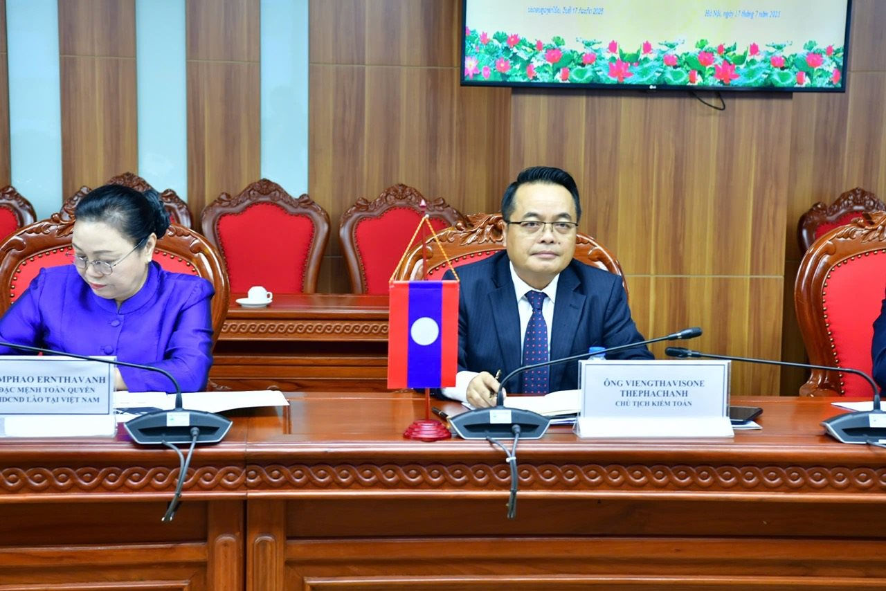 Nhân dịp này, Chủ tịch KTNN Lào Viengthavisone Thephachanh cũng gửi lời chúc mừng KTNN Việt Nam nhân dịp kỷ niệm 31 năm Ngày thành lập, chúc mừng những kết quả quan trọng KTNN Việt Nam đã đạt được trong thời gian qua, góp phần quan trọng thúc đẩy tăng trưởng kinh tế đất nước.