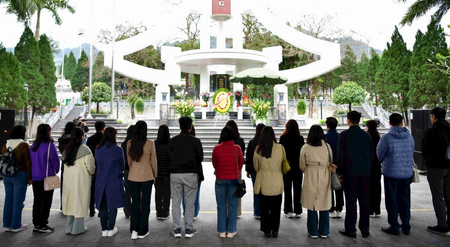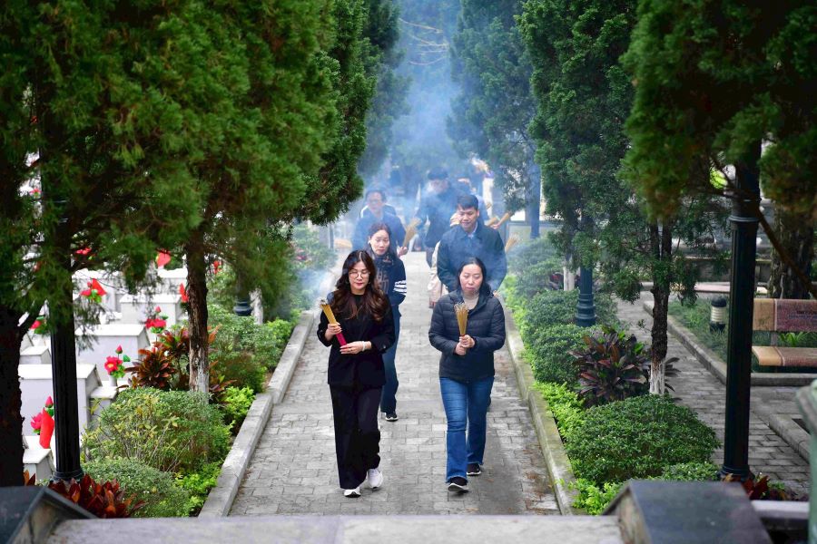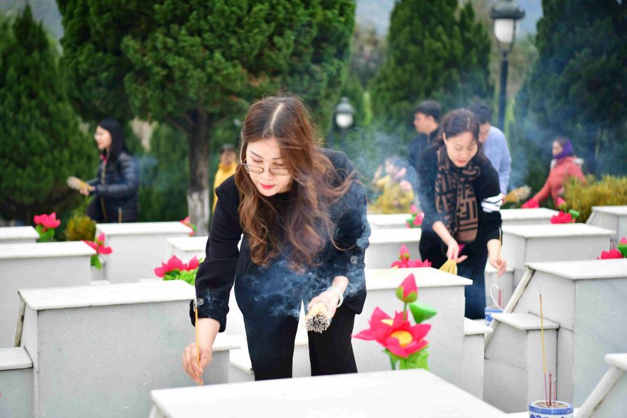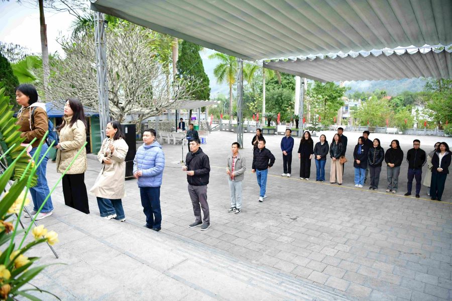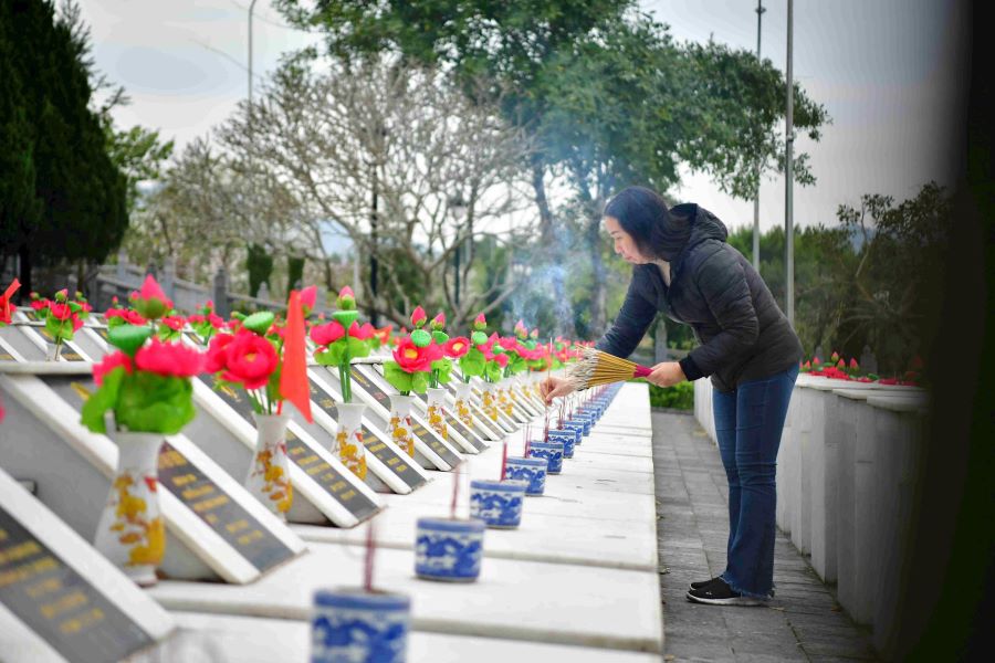 Trong không khí trang nghiêm, xúc động, Đoàn công tác dành một phút tưởng niệm, dâng hoa, dâng hương tưởng nhớ, tri ân công ơn của các Anh hùng, liệt sỹ; nguyện tuyệt đối trung thành với mục tiêu lý tưởng của Đảng Cộng sản Việt Nam, mãi mãi đi theo con đường của Đảng, Bác Hồ và Nhân dân đã lựa chọn; chung sức, đồng lòng quyết tâm xây dựng quê hương, đất nước ngày càng giàu đẹp.