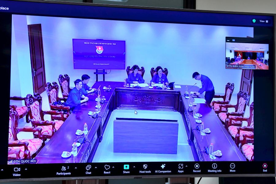 Dự Hội nghị tại điểm cầu trụ sở Kiểm toán nhà nước (KTNN) - 116 Nguyễn Chánh có Phó Bí thư Đoàn Thanh niên Quốc hội, Bí thư Đoàn Thanh niên KTNN Lê Mạnh Cường, các đồng chí Ủy viên Ban Chấp hành Đoàn Thanh niên Quốc hội công tác tại KTNN.