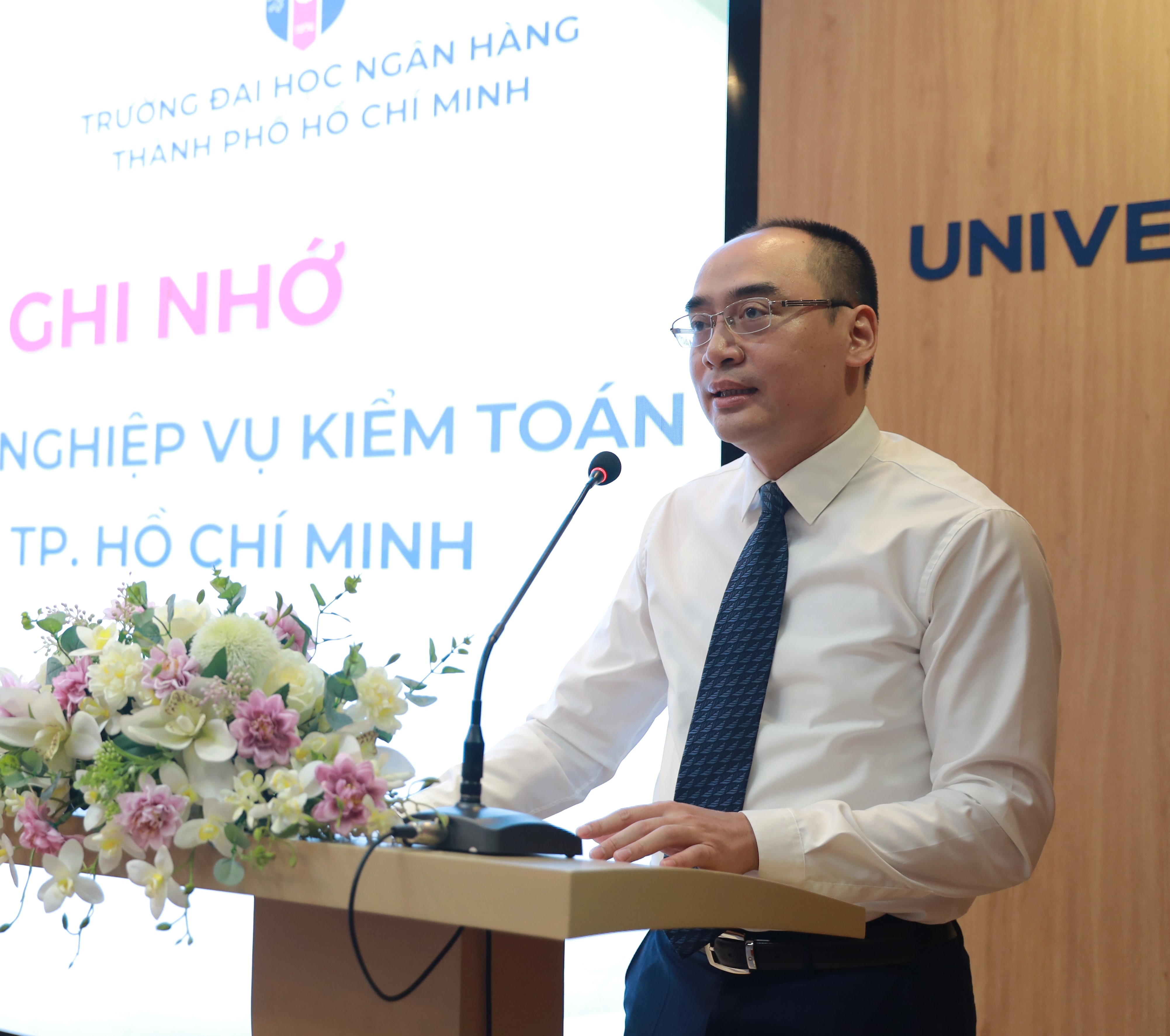Thay mặt cho Trường Đào tạo và Bồi dưỡng nghiệp vụ kiểm toán, Giám đốc Trường Trần Kim Lộc bày tỏ cam kết mạnh mẽ, nỗ lực, cố gắng, chung sức, đồng lòng, trách nhiệm và chuyên nghiệp để thực hiện tốt nhiệm vụ theo thỏa tuận hợp tác đã ký kết với Trường Đại học Ngân hàng Thành phố Hồ Chi Minh và nỗ lực phát triển mối quan hệ hợp tác giữa hai Trường ngày càng phát triển lâu dài, bền vững, với mục tiêu hai Trường sẽ cùng nhau cung cấp sản phẩm đào tạo, bồi dưỡng kiến thức chuyên môn, nghiệp vụ, kế toán, kiểm toán... chất lượng tốt nhất, góp phần nâng cao hiệu quả quản lý, sử dụng tài sản, tài chính, phát triển đất nước và hướng đến một nền tài chính quốc gia minh bạch, hiệu quả./.
