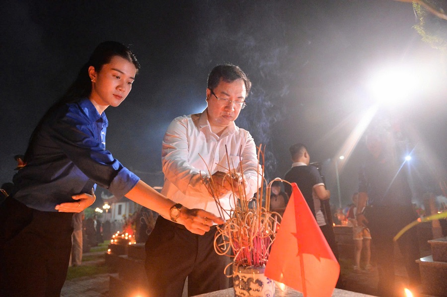 Chương trình diễn ra trang nghiêm, xúc động với các nghi thức: Thỉnh chuông, dâng hương, phát biểu tri ân, trao quà cho thân nhân các gia đình liệt sĩ. Lễ thắp nến hơn 350 phần mộ của các anh hùng liệt sĩ đã được diễn ra trong bầu không khí linh thiêng, vô cùng cảm xúc với sự tham dự của hàng trăm đại biểu tham dự.