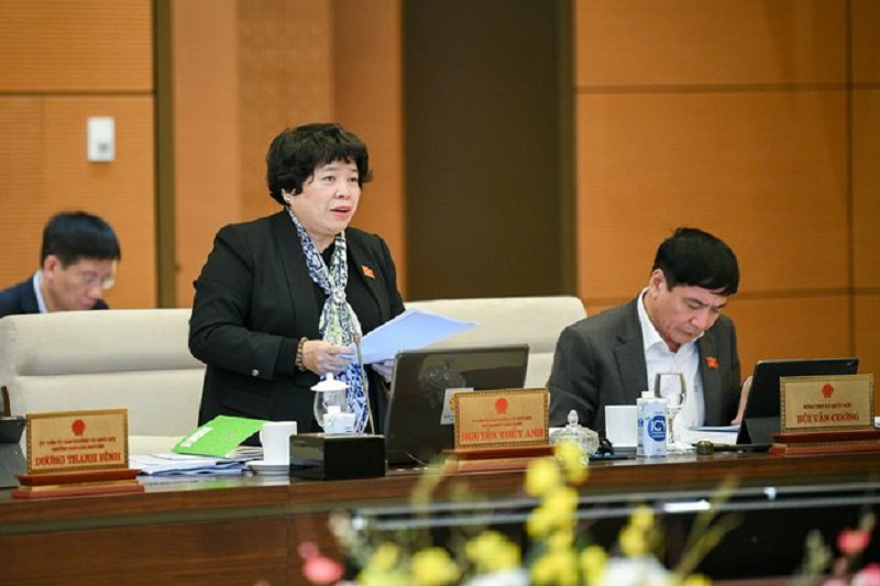Chủ nhiệm Ủy ban Xã hội Nguyễn Thúy Anh trình bày Báo cáo thẩm tra việc việc tổng kết, đánh giá việc thực hiện
