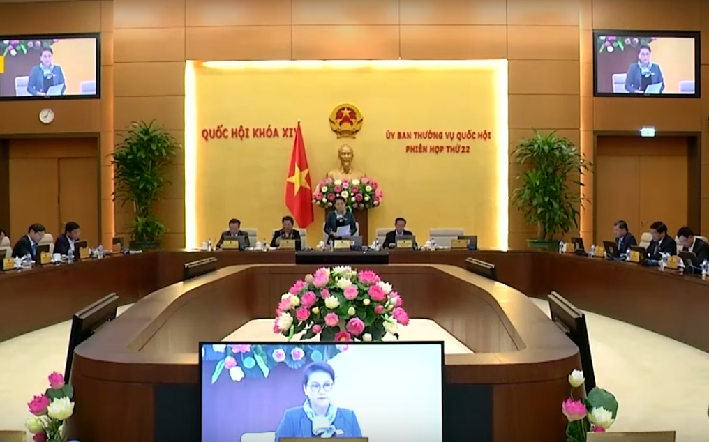 Theo Chủ tịch Quốc hội, Chương trình tại Phiên họp thứ 22 có điều chỉnh so với dự kiến chương trình gửi cho các thành viên của UBTVQH và các cơ quan, tổ chức hữu quan. Cụ thể, rút 03 dự án luật do chưa đảm bảo chất lượng, tiến độ chuẩn bị, gồm dự án: Luật Cảnh sát biển, Luật Quản lý phát triển đô thị, Luật Phòng chống tham nhũng sửa đổi; Không xem xét việc lấy phiếu tín nhiệm đối với người giữ chức vụ do Quốc hội và Hội đồng nhân dân bầu và phê chuẩn. “Việc lấy phiếu tín nhiệm đối với người giữ chức vụ do Quốc hội, Hội đồng nhân dân bầu hoặc phê chuẩn sẽ được tiến hành vào kỳ họp cuối năm của Quốc hội” - Chủ tịch Quốc hội Nguyễn Thị Kim Ngân cho biết.
