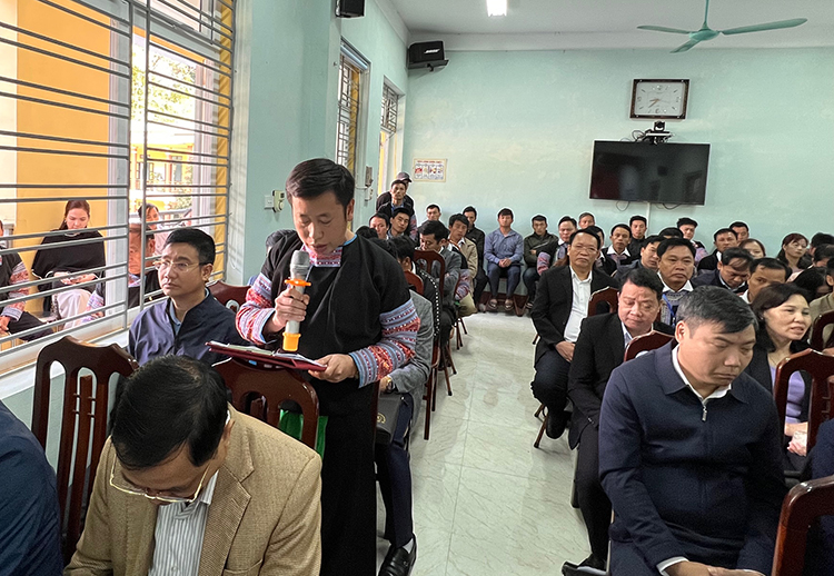 Cử tri Sùng À Màng, xã Pà Cò đưa ra ý kiến tại Hội nghị