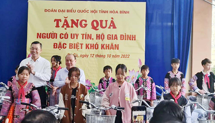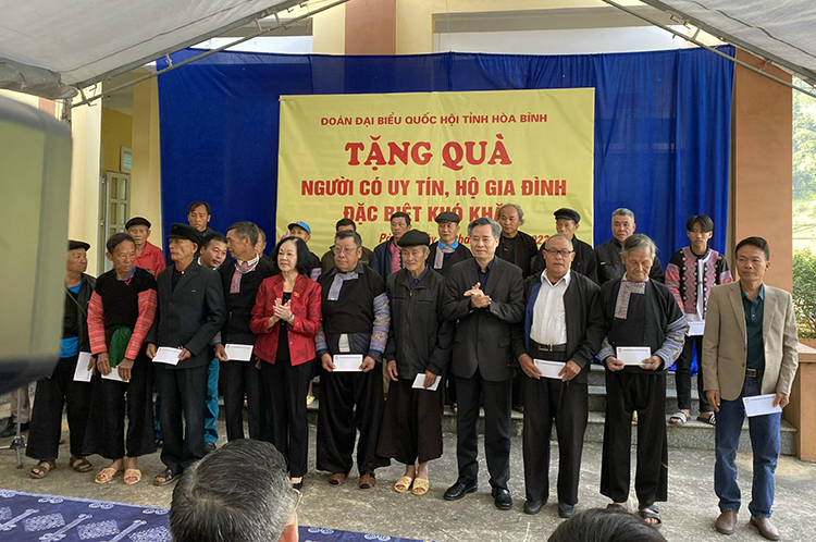 Trước khi tiếp xúc cử tri, Đoàn ĐBQH tỉnh Hòa Bình đã tặng quà cho người có uy tín, hộ gia đình có hoàn cảnh đặc biệt khó khăn trên địa bàn huyện Mai Châu với 200 suất quà cho hộ nghèo, hộ đặc biệt khó khăn, 20 suất quà cho người cho uy tín với tổng trị giá 260 triệu đồng và 20 chiếc xe đạp cho 20 học sinh nghèo vượt khó của huyện Mai Châu.