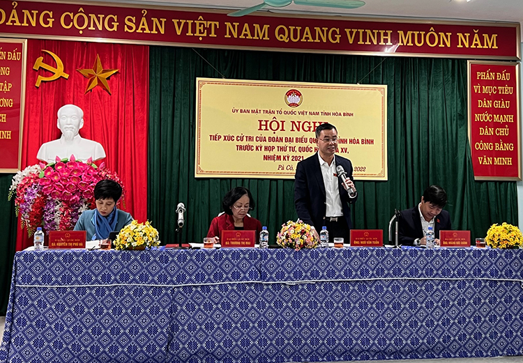 Tại Hội nghị, cử tri đại diện một số xã, thị trấn huyện Mai Châu đưa ra các ý kiến, kiến nghị liên quan đến công tác giáo dục, hỗ trợ dân sinh, giao thông, đầu tư tại huyện Mai Châu. Các ý kiến tập trung vào các nội dung: Kiến nghị xem xét có một bộ sách chung thống nhất cho học sinh tiểu học; Hướng tháo gỡ khó khăn khi tích hợp môn lịch sử và địa lý trong chương trình đào tạo cho học sinh trung học cơ sở; Hỗ trợ chính quyền địa phương, người dân trong phát triển du lịch; Bố trí vốn cho giai đoạn 2 của khu tái định cư Táu Nà và Suối Nhúng; Có chính sách mạnh mẽ hơn hỗ trợ sản xuất cho nhân dân vùng lòng hồ sông Đà; Tăng chế độ phụ cấp cho cán bộ không chuyên trách xã, xóm; Hỗ trợ bảo hiểm y tế cho vùng đồng bào khó khăn; Kéo dài thời gian giải ngân vốn các Chương trình mục tiêu quốc gia về giảm nghèo từ năm 2022 sang năm 2023 do năm 2022 là năm đầu tiên thực hiện Chương trình mục tiêu quốc gia về giảm nghèo, nên tiến độ giải ngân còn chậm; Đầu tư nâng cấp cải tạo tuyến QL15 đoạn qua huyện Mai Châu kết nối với huyện Quan Hóa, Thanh Hóa; Xem xét điều chỉnh cụ thể hơn về phạm vi đất dành cho đường bộ và đất giưới hạn hành lang an toàn đối với đường giao thông nông thôn...