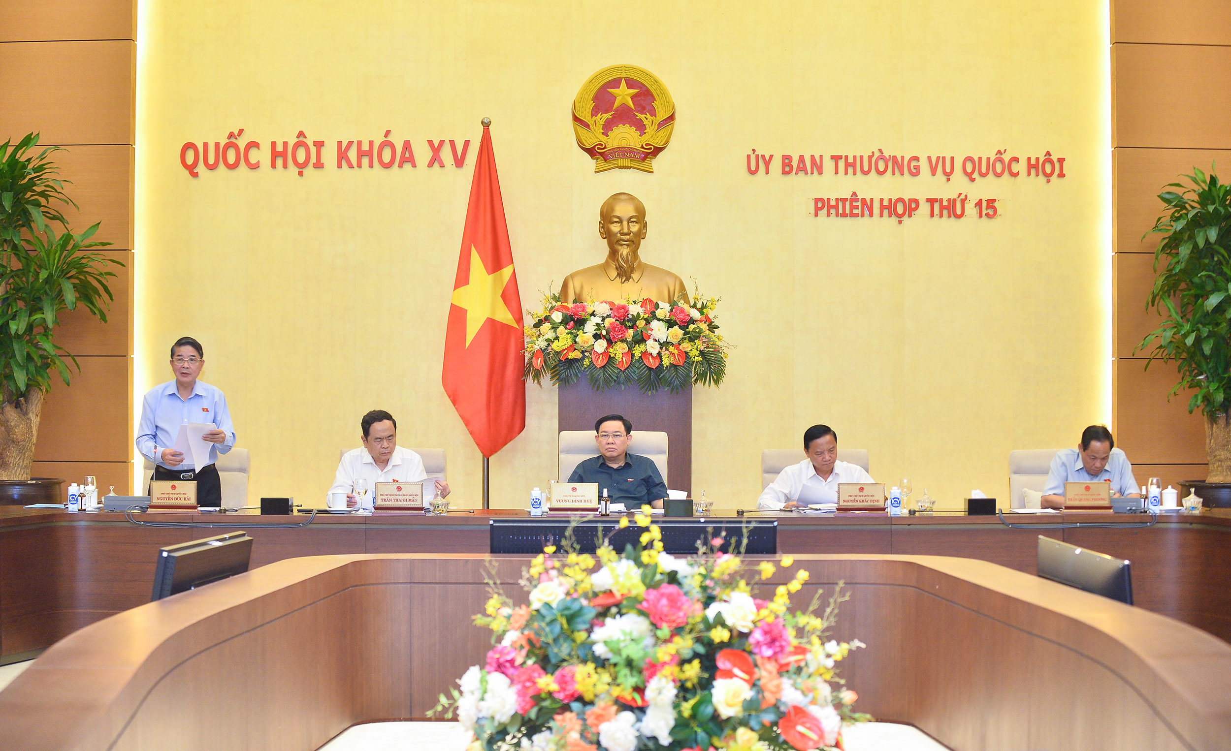 (sav.gov.vn) – Trong khuôn khổ ngày làm việc đầu tiên của Phiên họp thứ 15 của Ủy ban Thường vụ Quốc hội (UBTVQH), dưới sự điều hành của Phó Chủ tịch Quốc hội Nguyễn Đức Hải, UBTVQH nghe Phó Tổng Kiểm toán nhà nước phụ trách Kiểm toán nhà nước (KTNN) Ngô Văn Tuấn trình bày Báo cáo công tác năm 2022 và kế hoạch kiểm toán (KHKT) năm 2023 của KTNN; nghe Chủ nhiệm Uỷ ban Tài chính Ngân sách (UBTCNS) của Quốc hội Nguyễn Phú Cường trình bày báo cáo thẩm tra của Ủy ban về Báo cáo của KTNN. Chủ tịch Quốc hội Vương Đình Huệ dự và phát biểu tại phiên làm việc.