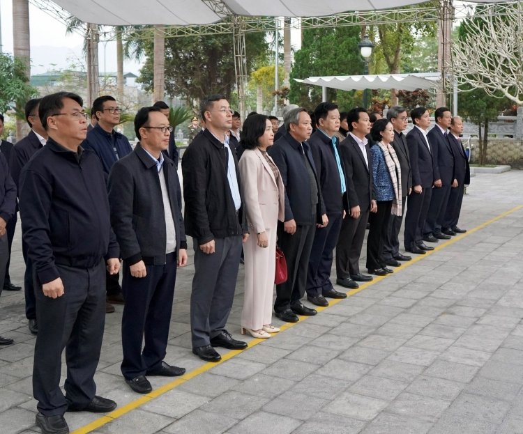 Đoàn công tác dâng vòng hoa tưởng nhớ các anh hùng liệt sỹ tại Nghĩa trang Liệt sỹ Quốc gia Vị Xuyên.