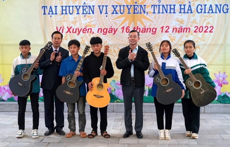Tổng Kiểm toán nhà nước Ngô Văn Tuấn tặng 50 chiếc xe đạp cho học sinh hiếu học, con em các gia đình chính sách, hộ nghèo trên địa bàn huyện Vị Xuyên; tặng 20 cây đàn ghi ta cho một số Trường trên địa bàn huyện Vị Xuyên.
