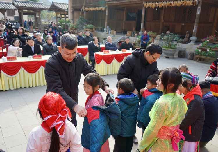 Đoàn công tác cùng lãnh đạo tỉnh tặng 1.000 chiếc áo ấm cho học sinh trên địa bàn huyện Đồng Văn.