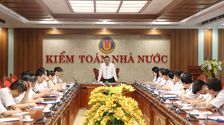 Phó Tổng Kiểm toán nhà nước Nguyễn Tuấn Anh phát biểu tại buổi làm việc