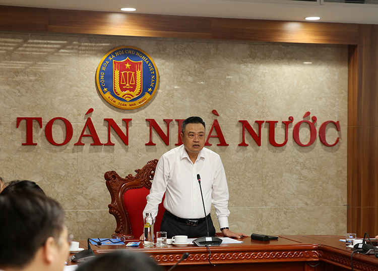 Phó Tổng Kiểm toán nhà nước Nguyễn Tuấn Anh phát biểu tại buổi làm việc