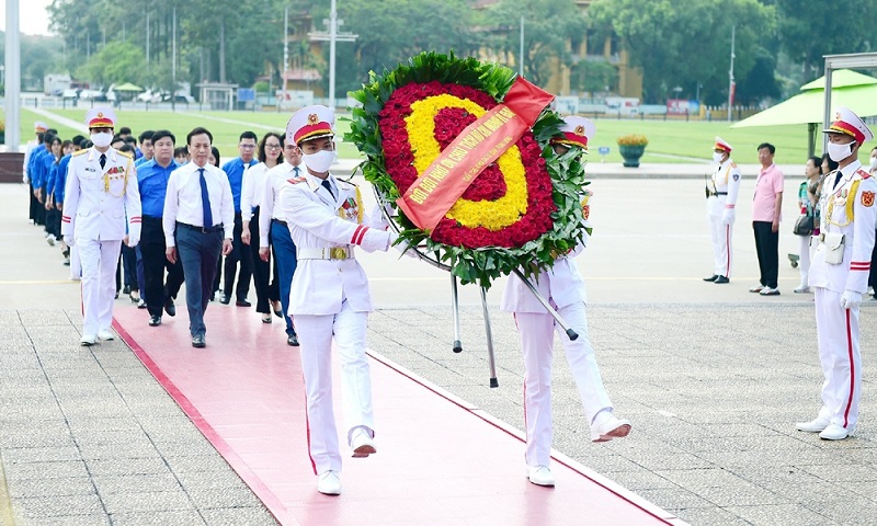 Các đại biểu ưu tú là đoàn viên, thanh niên Khối các cơ quan Trung ương được tuyên dương đã tham gia Lễ báo công, viếng Lăng Chủ tịch Hồ Chí Minh