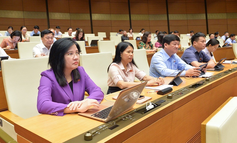 Các ĐBQH tại phiên thảo luận tại hội trường về chương trình dự kiếm giám sát của QH năm 2024