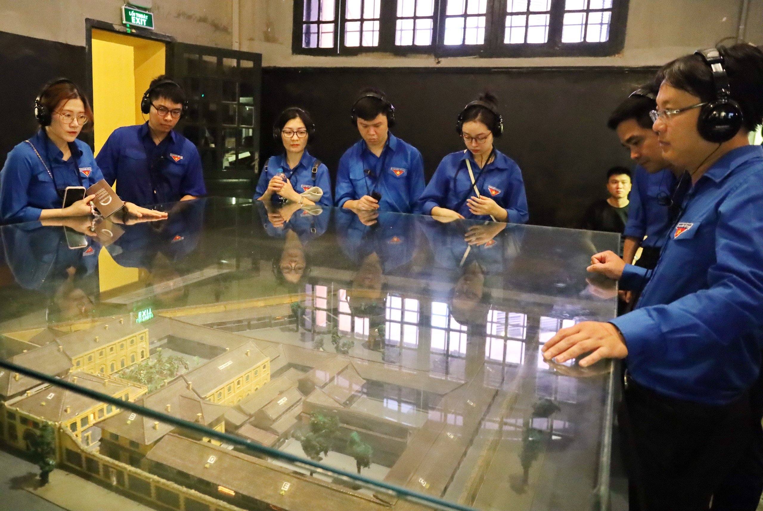 Các đoàn viên tham quan di tích Nhà tù Hỏa Lò