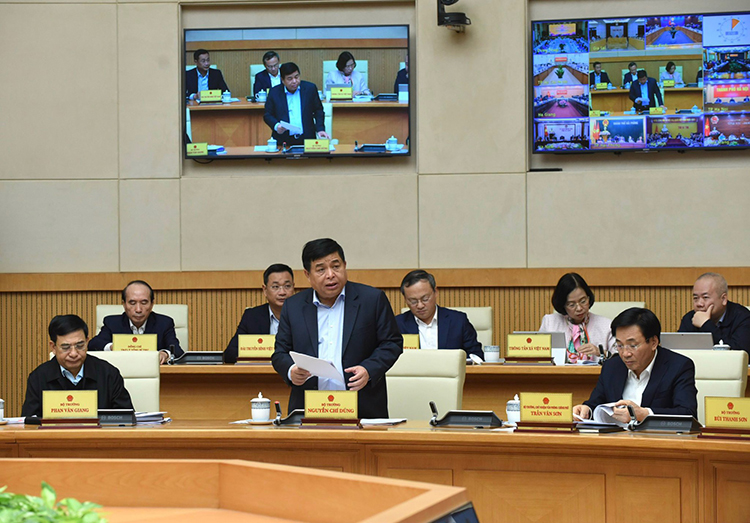 Bộ trưởng Bộ Kế hoạch và Đầu tư Nguyễn Chí Dũng báo cáo tại phiên họp