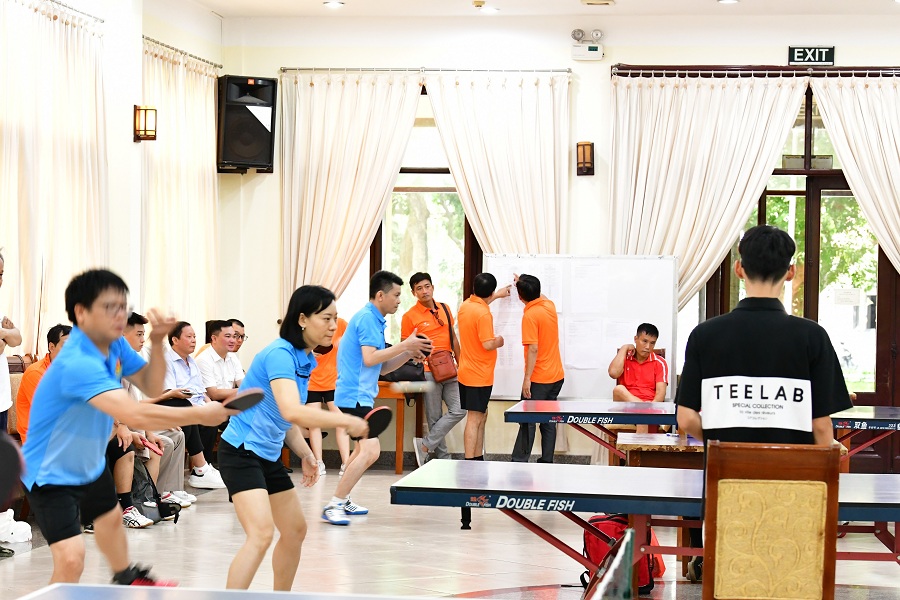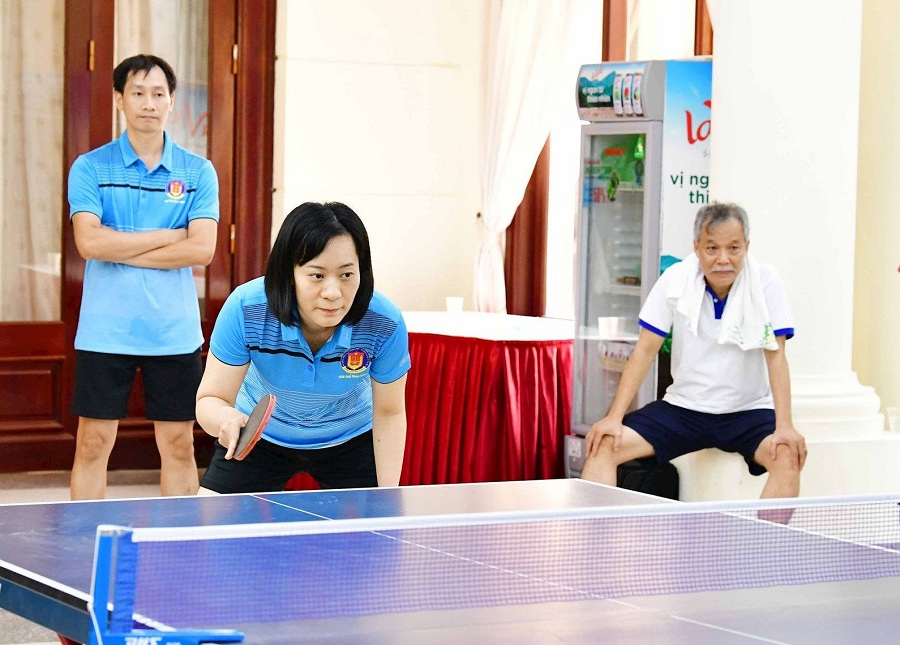 Chủ tịch Công đoàn KTNN Trần Kim Lộc thi đấu môn bóng bàn vào sáng 07/10