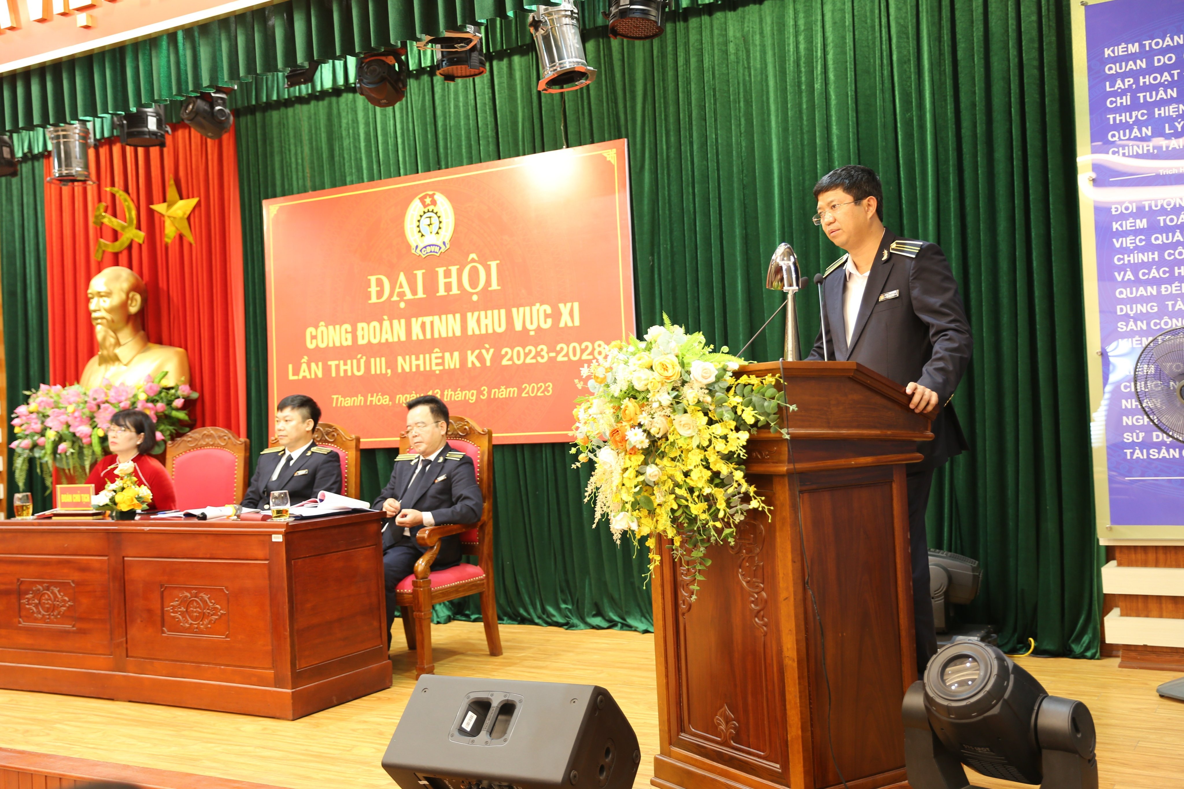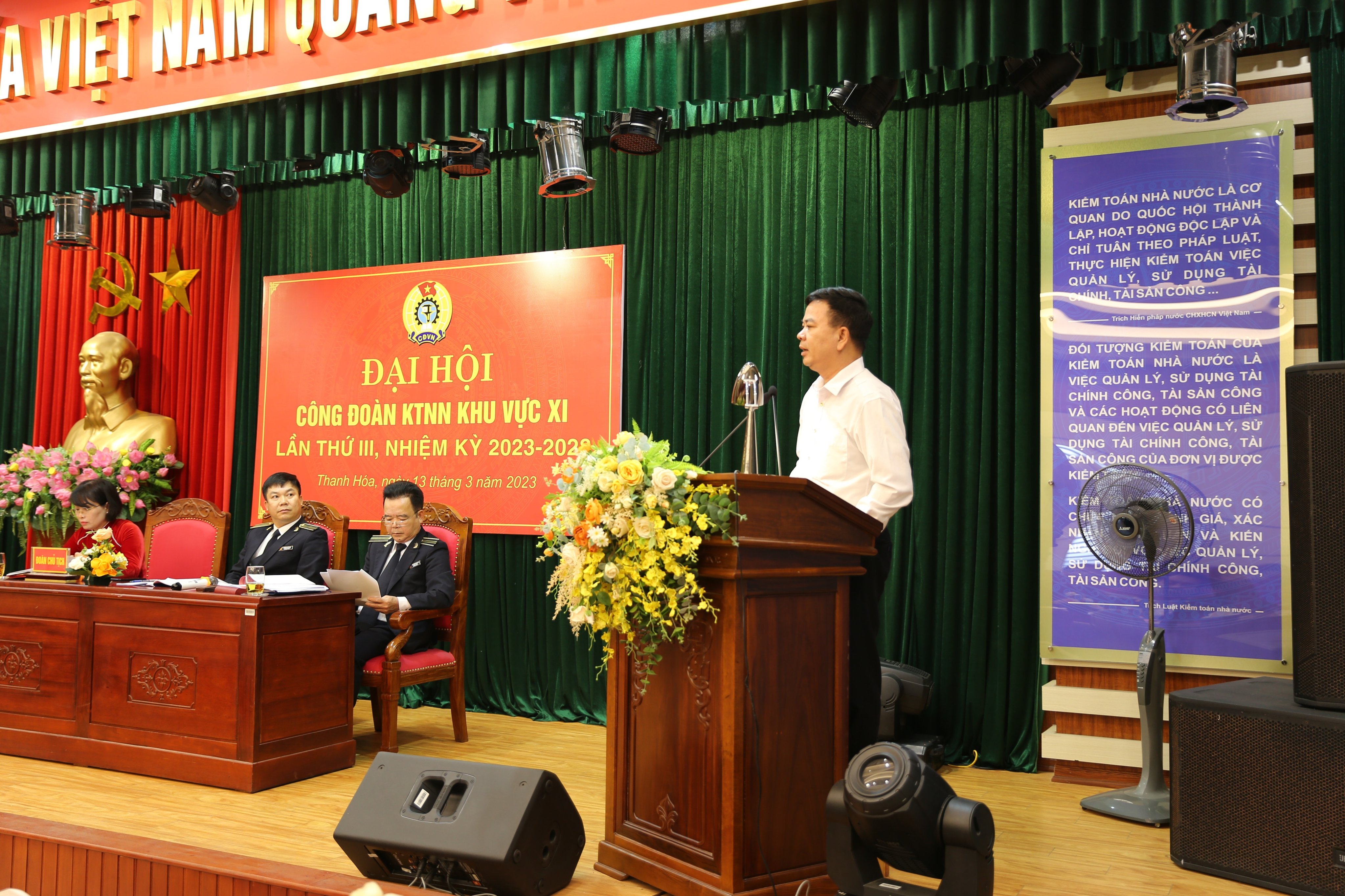 (sav.gov.vn) - Chiều ngày 13/3/2023, tại trụ sở Kiểm toán nhà nước (KTNN) khu vực XI, thành phố Thanh Hóa, tỉnh Thanh Hóa, Công đoàn KTNN khu vực XI đã tổ chức Đại hội lần thứ III, nhiệm kỳ 2023-2028. Tham dự Đại hội có Phó Chủ tịch chuyên trách Công đoàn KTNN Vũ Lập Công; Bí thư Đảng ủy, Kiểm toán trưởng KTNN khu vực XI Đoàn Chiến Thắng; toàn thể lãnh đạo, công chức, người lao động của đơn vị.