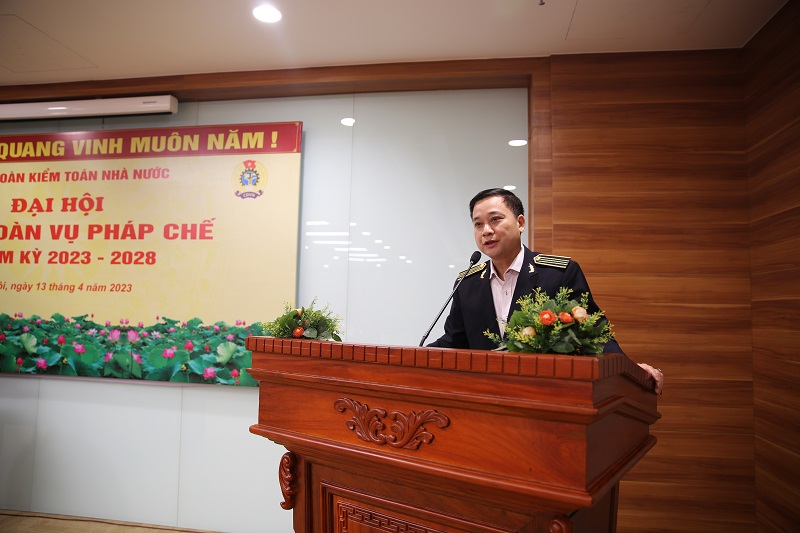 Phát biểu chỉ đạo Đại hội, Ủy viên BTV Công đoàn KTNN Nguyễn Minh Giang ghi nhận những kết quả đã đạt được của Công đoàn KTNN Vụ pháp chế trong nhiệm kỳ vừa qua. Cơ bản nhất trí với dự thảo Báo cáo trình bày tại Đại hội, Ủy viên BTV Nguyễn Minh Giang đề nghị BCH nhiệm kỳ 2018-2023 cũng như BCH nhiệm kỳ 2023-2028 cần xác định rõ phương hướng, đề xuất các mục tiêu và có giải pháp cụ thể để thực hiện thắng lợi Nghị quyết Đại hội Công đoàn vụ Pháp chế nhiệm kỳ 2023-2028.