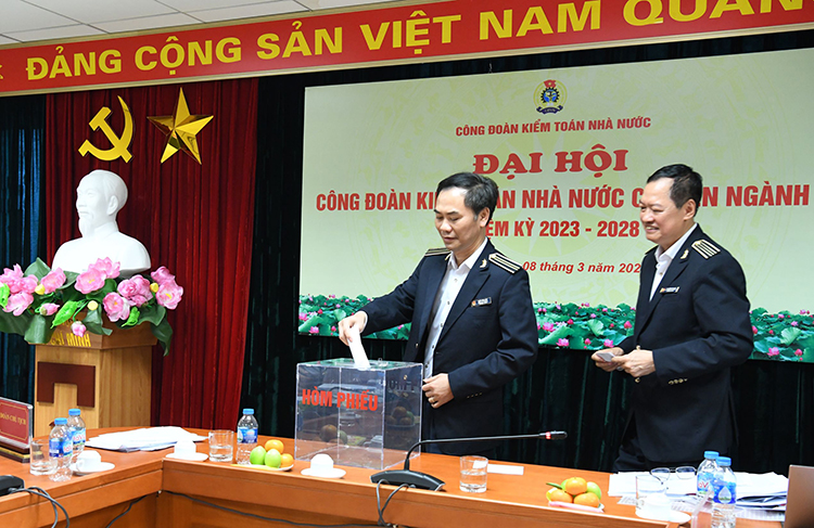Với tinh thần làm việc nghiêm túc, khẩn trương, Đại hội đã bầu BCH Công đoàn KTNN nhiệm kỳ 2023-2028 gồm 5 đồng chí. Đồng chí Nguyễn Giang Sơn - Phó Kiểm toán trưởng KTNN chuyên ngành VI được bầu là Chủ tịch Công đoàn của đơn vị. Đại hội cũng đã nhất trí bầu Đoàn đại biểu gồm 6 đồng chí đi dự Đại hội Công đoàn KTNN nhiệm kỳ 2023-2028./.