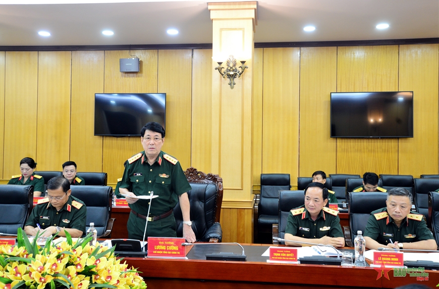 Phát biểu tại hội nghị, Đại tướng Lương Cường trân trọng chào mừng Đoàn Kiểm toán nhà nước đến làm việc, thực hiện nhiệm vụ kiểm toán tại Tổng cục Chính trị Quân đội nhân dân Việt Nam; giới thiệu khái quát với đoàn chức năng, nhiệm vụ, tổ chức, biên chế và những nét đặc thù của Tổng cục.