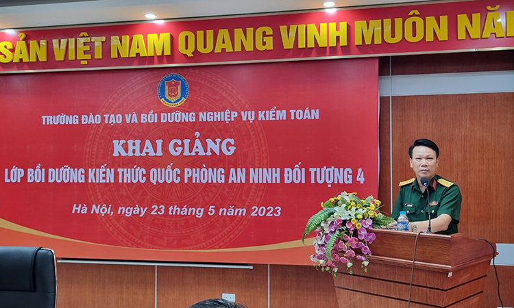 Phát biểu khai giảng, Phó Giám đốc Trường Hà Minh Tuấn cho biết, lớp bồi dưỡng được tổ chức theo kế hoạch đào tạo, bồi dưỡng năm 2023 của KTNN nhằm triển khai toàn diện công tác giáo dục quốc phòng an ninh (QPAN), tạo sự chuyển biến mạnh mẽ trong cán bộ, đảng viên về nhận thức và trách nhiệm đối với sự nghiệp bảo vệ tổ quốc Việt Nam xã hội chủ nghĩa trong tình hình mới.