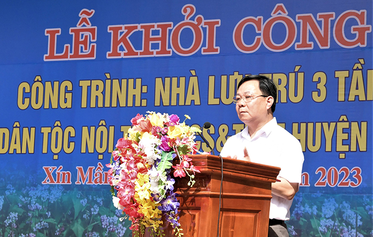 Phát biểu tại lễ khởi công, Chủ tịch UBND huyện Xín Mần Phạm Duy Hiền cho biết, Trường phổ thông dân tộc nội trú THCS & THPT huyện Xín Mần được thành lập năm 2021 trên cơ sở nâng cấp trường Phổ thông dân tộc nội trú THCS huyện Xín Mần. Năm học 2022-2023, Trường có gần 500 học sinh, 95,5% học sinh là con em đồng bào dân tộc thiểu số. Trường được xác định trở thành trường điểm về chất lượng giáo dục và công tác nội trú, nơi đào tạo nguồn nhân lực, cán bộ nguồn là con em đồng bào dân tộc thiểu số của địa phương, góp phần vào sự nghiệp chung phát triển kinh tế xã hội, xóa đói giảm nghèo.