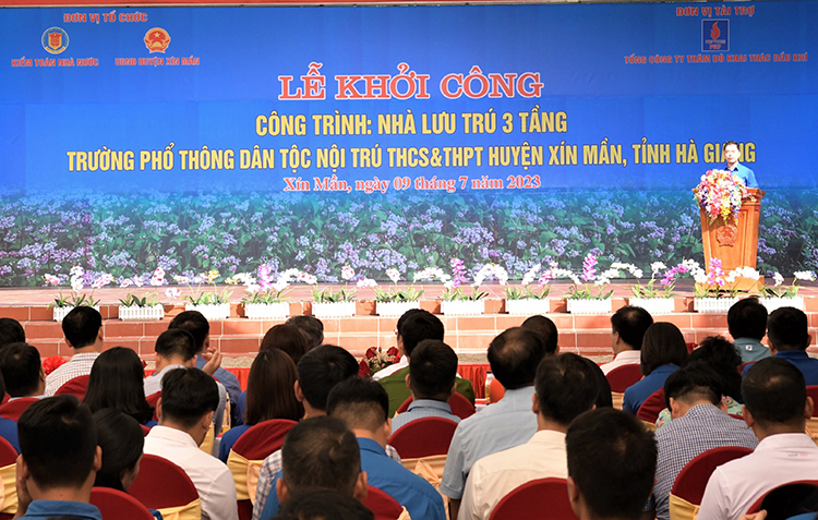 Thay mặt Đảng bộ, chính quyền, nhân dân các dân tộc huyện Xín Mần và các thầy cô, học sinh của Trường, Chủ tịch UBND huyện Xín Mần bày tỏ lòng biết ơn và ghi nhận sự quan tâm, giúp đỡ của KTNN, Tổng Công ty Thăm dò Khai thác Dầu khí trong việc tài trợ xây dựng nhà lưu trú của Trường, tách riêng khỏi khu vực giảng dạy, tạo thuận lợi cho công tác quản lý học sinh, góp phần nâng cao chất lượng môi trường nội trú của học sinh. Chủ tịch UBND huyện Xín Mần cam kết sẽ chỉ đạo các đơn vị liên quan sử dụng đúng mục đích, hợp lý, hiệu quả nguồn lực được hỗ trợ, đẩy nhanh tiến độ thi công, đảm bảo chất lượng công trình và sớm hoàn thành, đưa vào sử dụng.