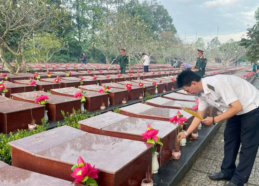 Tại đây, công chức, kiểm toán viên KTNN khu vực V đã thắp hương tại từng phần mộ liệt sỹ để bày tỏ lòng tôn kính và tri ân sâu sắc đối với các Anh hùng liệt sỹ; nguyện sẽ nỗ lực vượt qua mọi khó khăn, phấn đấu hoàn thành xuất sắc các nhiệm vụ chính trị được giao, góp sức xây dựng quê hương ngày càng giàu đẹp.