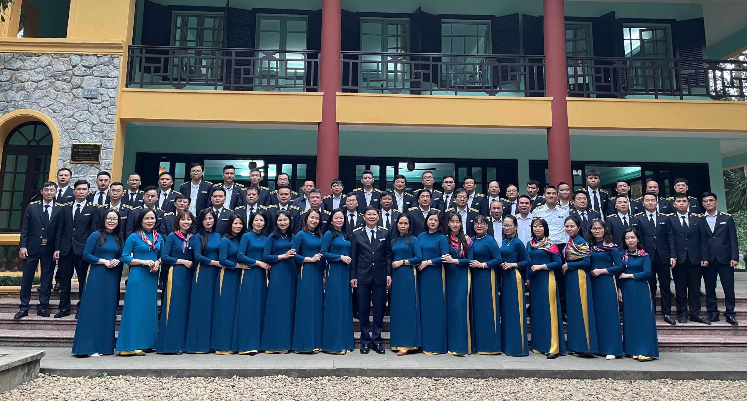 KTNN chuyên ngành Ia chụp ảnh lưu niệm tại Nhà làm việc của Chủ tịch Hồ Chí Minh. Ảnh: CTV